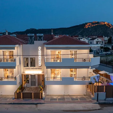 Das Pantheon Suites Mytaras verfügt über einen Wohnbereich, einen Balkon und eine Küche und Annehmlichkeiten wie eine Klimaanlage. Diese Unterkünfte bietet 1 Badezimmer.